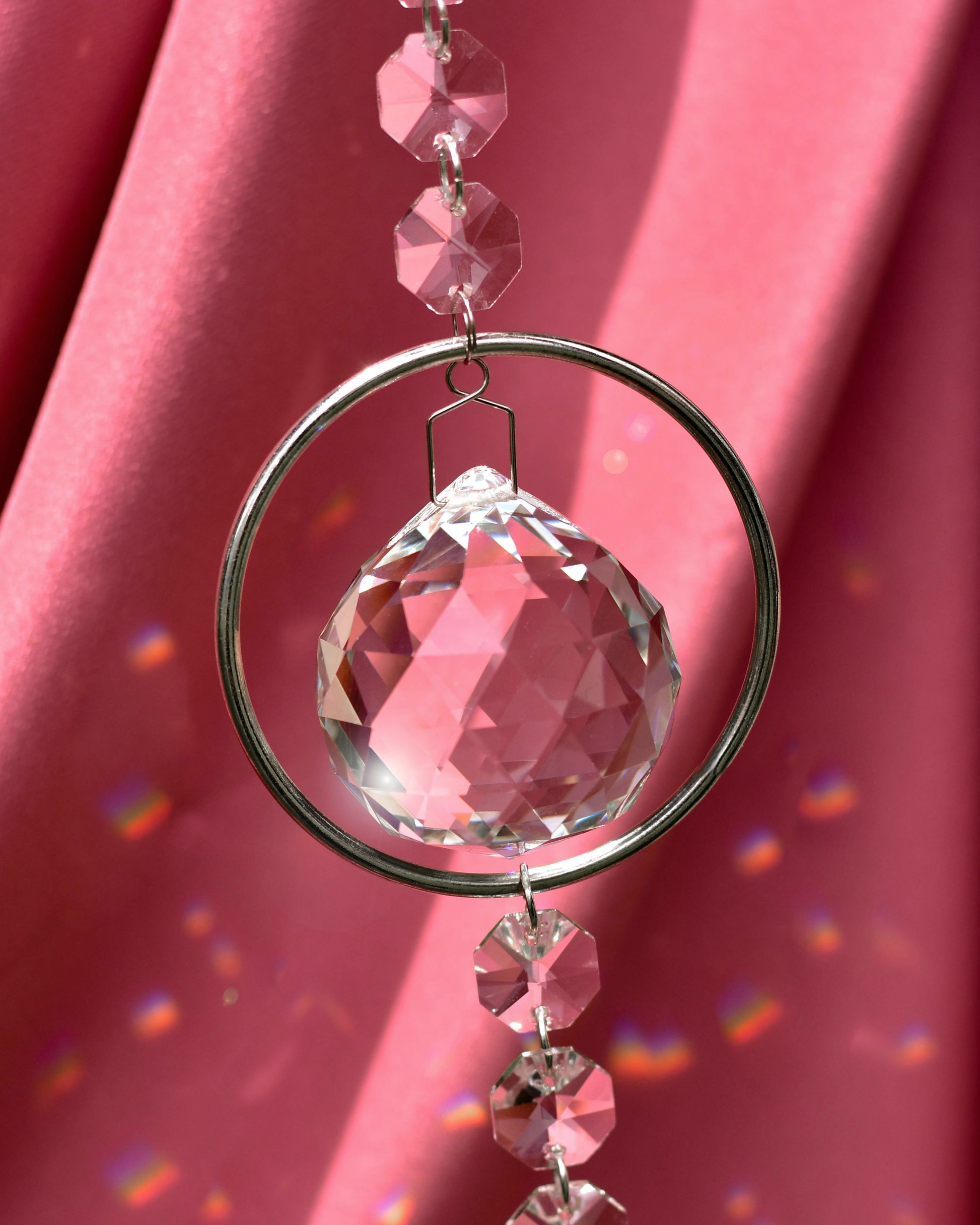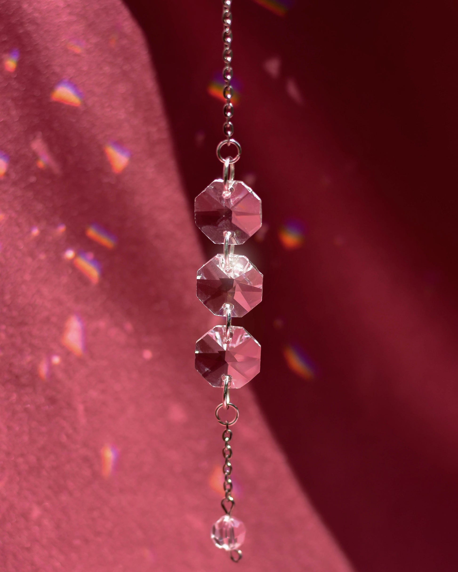 our fun take on a elegant suncatcher design with the added octagon beads, giving it more character! definitely a lively and unique addition to your comfort space.